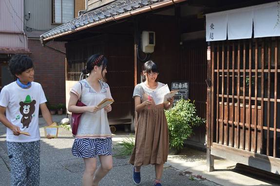 寺町まっすぐ新聞は金沢市寺町のいろいろな情報が載っているリーフレットで、atetoteの発行元であるKAKUMA NO HIROBAも寺町に事務所を置いているということで、配布のお手伝い。