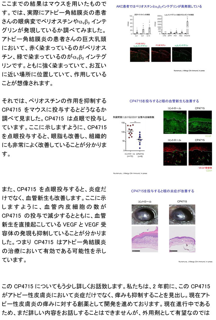 本日、「「CP4715」の慢性のアレルギー性結膜炎への改善効果を発見 -世界初のアレルギー性結膜炎に対する分子治療薬の開発へ-」のタイトルで記者会見を行いました。