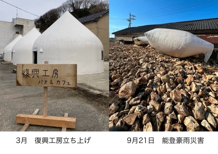 2024年3月、仮設住宅に入居し生活基盤を整えると同時に、名古屋工業大学の北川啓介教授よりインスタントハウスを寄贈いただき、復興工房「パオ」と名付け、制作活動再開にこぎつけることができました。
