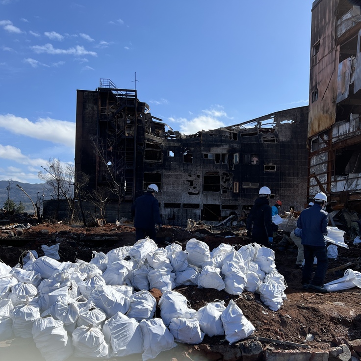 <まだ瓦礫の撤去は途中です、最後は何袋に>