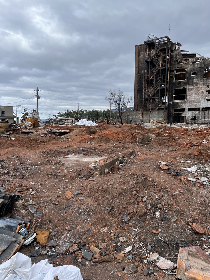 能登半島地震より2ヶ月を迎えます。輪島朝市は、あの日の姿のまま高い建物が徐々に高さを変え、倒れた建物はより一層傾きが増しております。私達のアトリエ、ギャラリー、自宅があった場所は3度目ボランティアさんのお陰でほぼ瓦礫は土嚢袋に入り土の我家となっています。