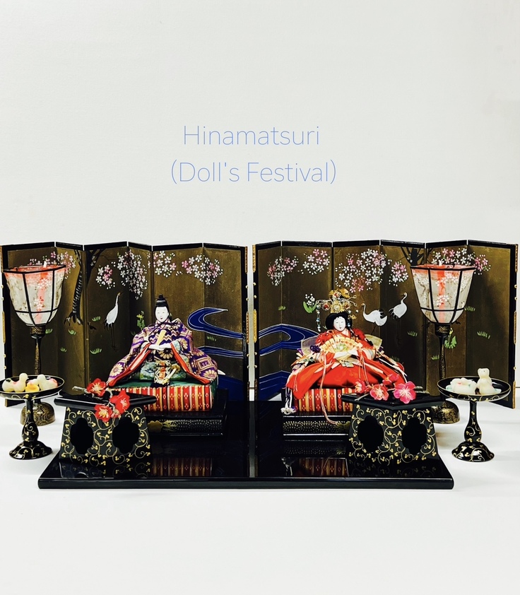 < 曽祖父から引き継いだ130年前から、我家で上巳の節句に楽しんでいた雛飾り>