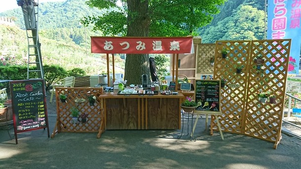 日々の営業活動に加え、季節イベントの開催や街の清掃活動など、少しでも観光客の皆様に楽しんでいただけるように取り組んでいますが、私たちの温泉街は衰退の一途をたどっています。生まれ育った地元を次世代にも残して行きたい、かつての賑わいを取り戻したいとの想いから、昨年簡易店舗としてローズガーデンカフェを運営しました。