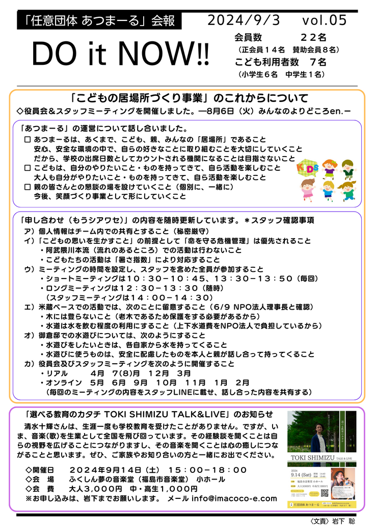 役員会&スタッフミーティングでの話し合いを受けて、利用している皆様に情報を提供しました。
