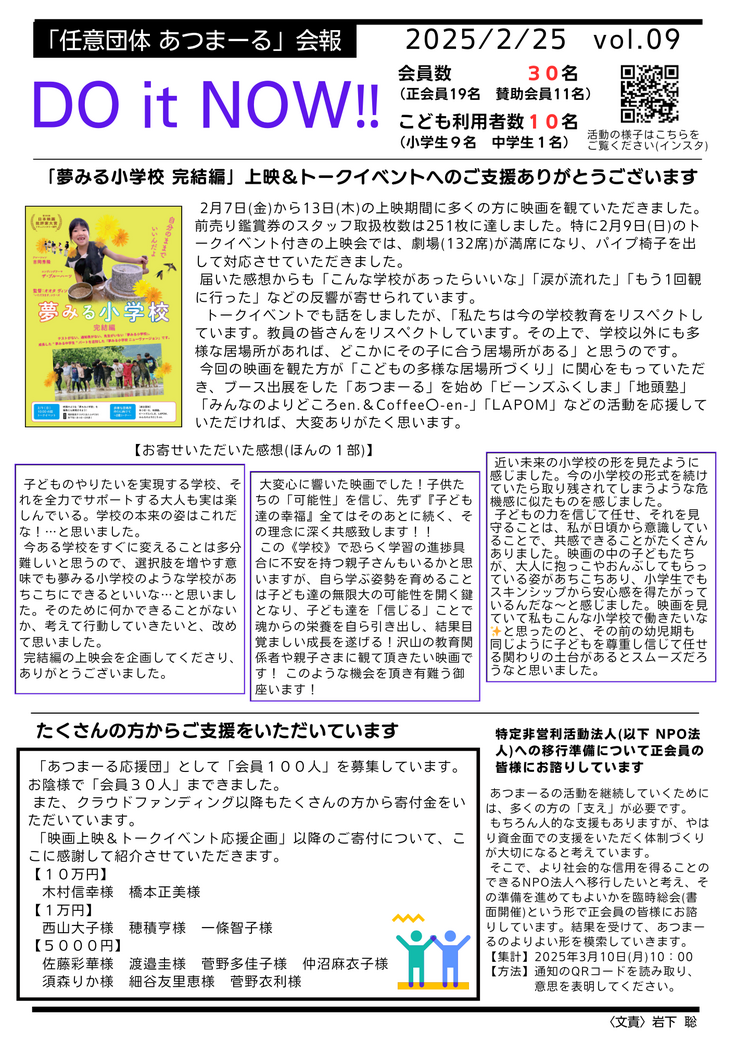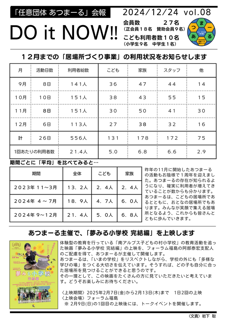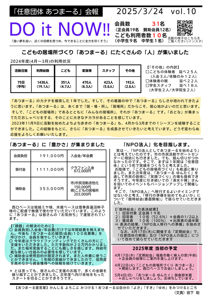 クラウドファンディングでご支援をいただき活動してきた「あつまーる」の2024年度の活動が終了しました。