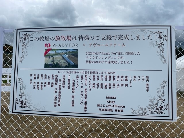 この度は、NPO法人アヴニールファームのプロジェクト【余生を過ごす牧場!新たなる放牧地を】に御支援いただき、誠にありがとうございました。