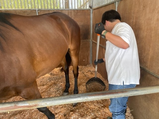 アヴニールファームは、引退競走馬等の余生を過ごす牧場と伺い、何度か通いましたが、次第に何か自分でも、引退競走馬の為に出来る事はないかと思い、仕事が休日の日を活用し、ボランティアをさせていただいいています。活動では、いろいろな事をさせていただき、馬の世話の大変さを身にしみて実感いたしました。また、引退した競走馬達が少しでも多く、こういった牧場で生きていければ幸せな事だなと感じました。