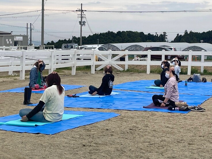 そんな放牧地で、ヨガインストラクターの先生のもと、ヨガが体験できます。