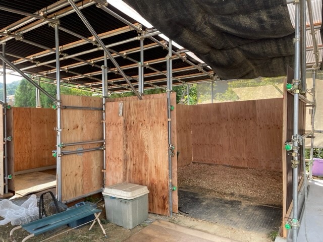 新たに2頭分の馬房が完成し、ひとつは3.5m✕3.5m、もうひとつは4m✕3.5mと少し広めで、