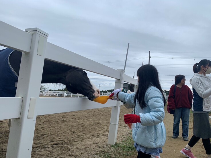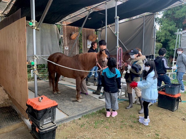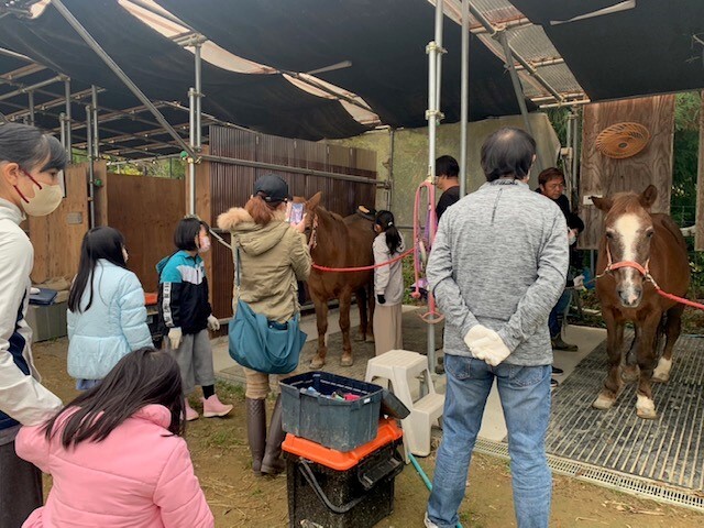 牧場では、馬についての豆知識・質疑応答・馬房掃除・ポニーのブラッシング・蹄の掃除・えさやり体験・体験乗馬を行っていただき、子供達も非常に楽しそうに過ごしていました。