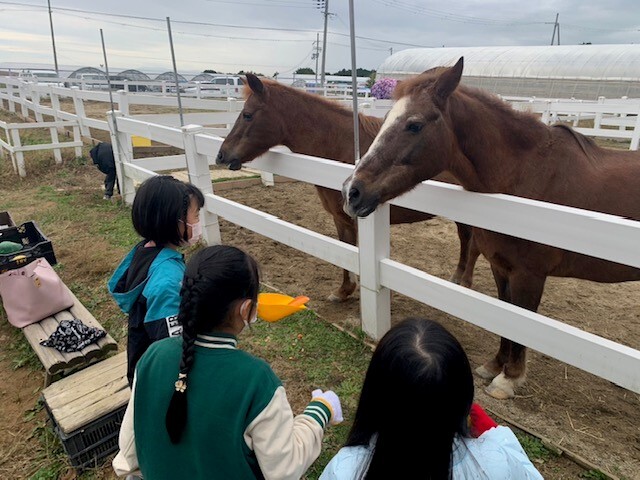 午前中は、牧場でふれあい体験、昼からは近隣農家にて、みかん狩り・芋ほりを体験していただきました。