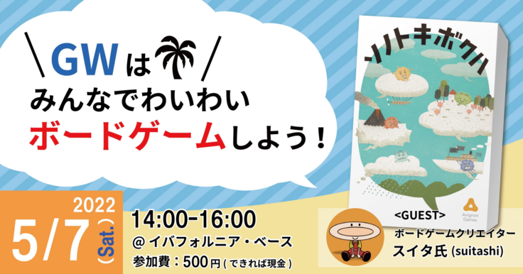 5月7日(土)14:00-16:00 茨城県の阿字ヶ浦海岸にあるイバフォルニアベースさんにて、「GWはみんなでわいわいボードゲームしよう!」を開催いたしました!