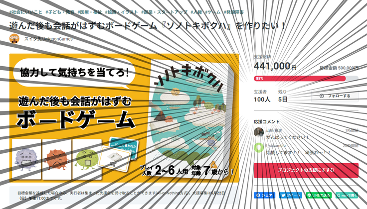 終了まであと5日。支援者数100名を突破のお知らせ。