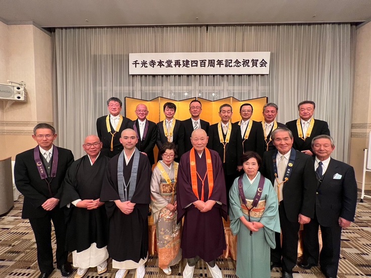 千光寺の本堂は1622年に徳島藩祖 蜂須賀家政公により再建されて400周年を迎えます。これを記念して、大導師に高野山より長谷部真道管長猊下にお迎えし、先山千光寺本堂再建400周年記念法会を厳修致しました。当日、霙の降る中50名を超える方にご参拝いただきました。また同日に行われました祝賀会も盛会に終わり、寺内役員一同令和6年度以降の本堂修復に向けて気持ちを新たに邁進して参ります。