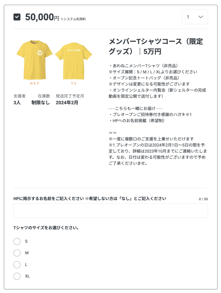 おすすめリターンのご紹介②「メンバーTシャツコース」
