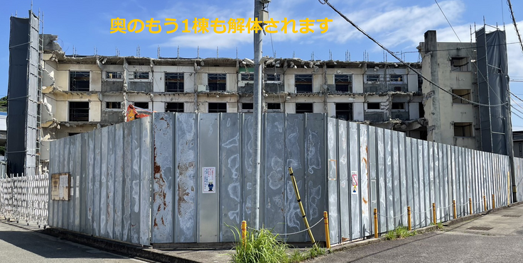 駐車場を兼ねるイベント広場の予定地でも、既存建物の解体が始まっています。