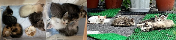 1頭の母猫が遺棄された1組の子猫達含めて7頭の子猫のお世話を頑張っていましたが、