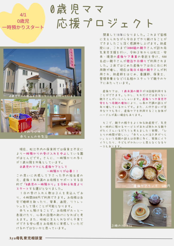 ・助産院を利用するママへの応援メッセージをお送りいただき、冊子にまとめて読んでいただけるようにします