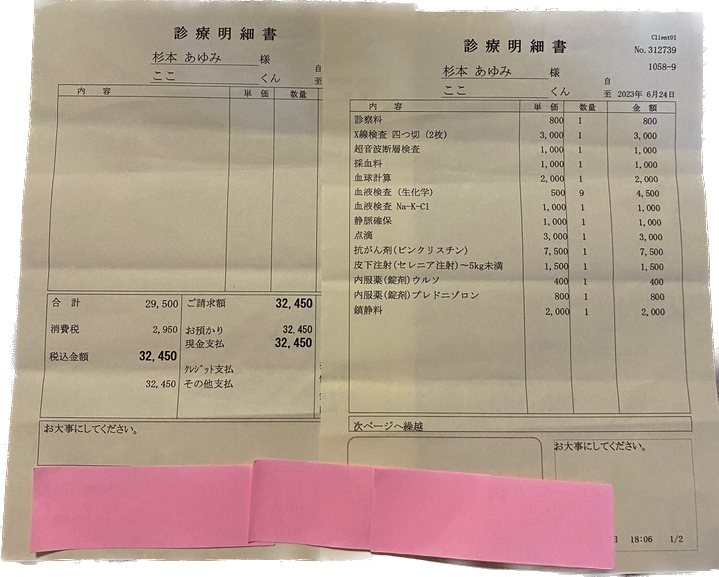 ページ上に掲載している診断書や診療明細書などの資料は全て動物病院から掲載の許諾を得ております。