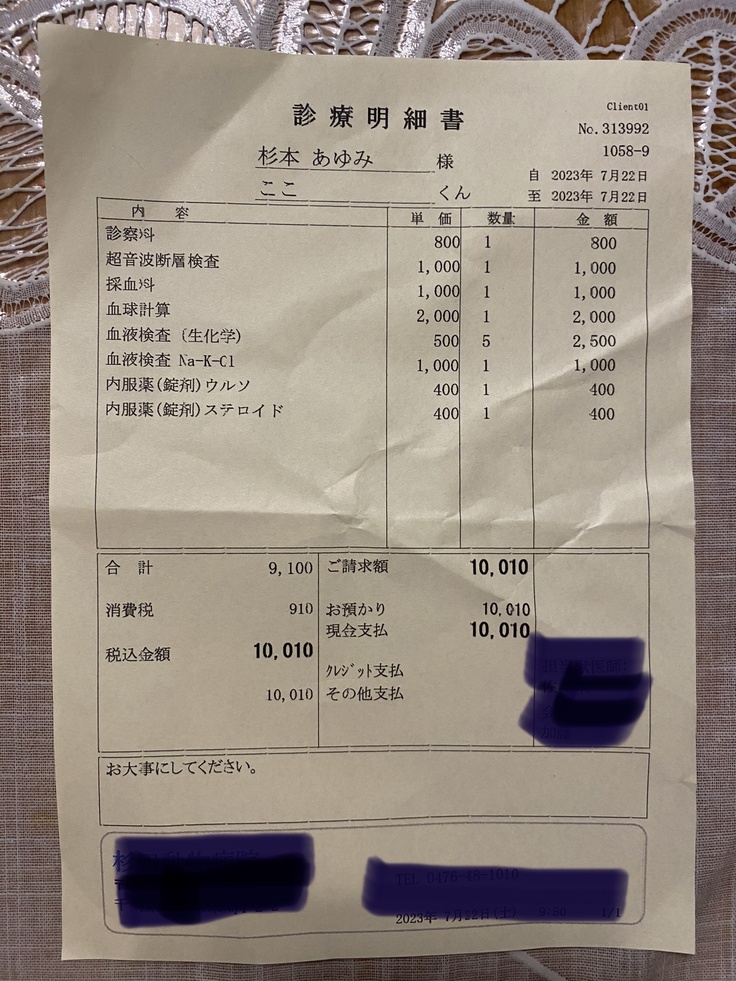 ※7/22 抗がん剤休み、検査のみ 10,010円
