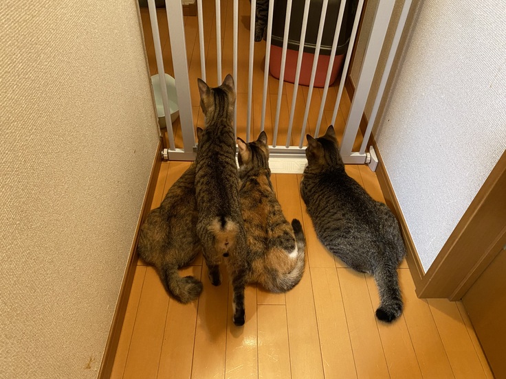 ここちゃんたちは、このゲートから先には行けません。ゲートの先で、先住猫のちゃあちゃんが、私を呼んでいて、興味津々です。甘えたそぶりも見せます。一生会わせてあげられないと思うと、つらすぎます。