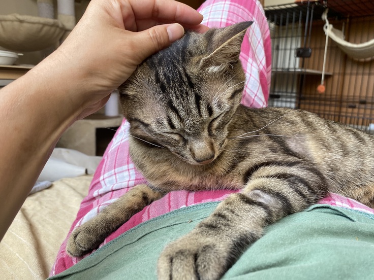 ここちゃんを舐めてあげているのは、さちです。保護した時は134gしかなくて弱々しく、心配したのですが、たくさん食べて元気に育ちました。それでも体重は、一番小さく、ぶん太の半分。でも、今、一番軽いのは、ここちゃんになってしまいました。ここちゃんは、6/11までは、4.56キロあり、ぶん太より少し小さいぐらいの2位だったのですが、リンパ腫を発症してから減り続け、今日は、3.48キロ。先週より、また、0.08キロ減ってしまいました。食欲もあり、元気なのに何故だろう。吐きも、下痢もないし、獣医さんも首を傾げていますが、この先も減り続けるようなら、お腹の検査をするということです。普通は、再発するとしたら、元、腫瘍があったところがほとんどらしいのですが、心配です、、、。