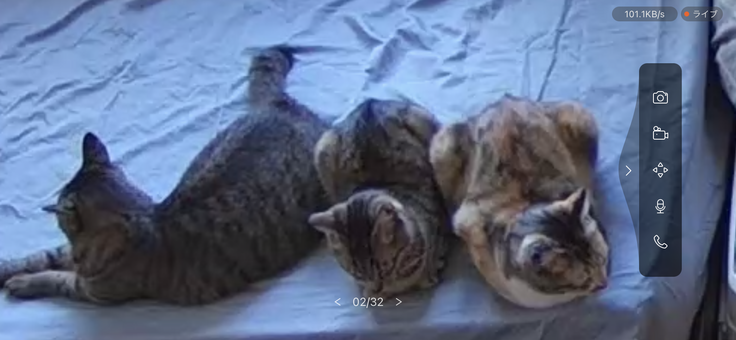早朝、見守りカメラの写真です。ミルク(ミケ)は、ここちゃんのそばにいてくれることが多いです。私の目を見つめて、「ここちゃん、大丈夫なの?」と聞いてくるような時も多いです。