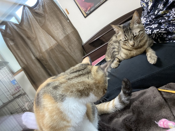 ミルクがまた、全身を舐めてあげています。兄弟の愛を強く感じ、心が打たれます。頑張るしかないぞ!ここちゃん!