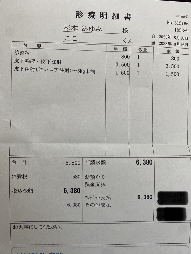 ました。早く元気になってほしいです。次の病院は、18日。また、点滴です。その時、獣医さんに、