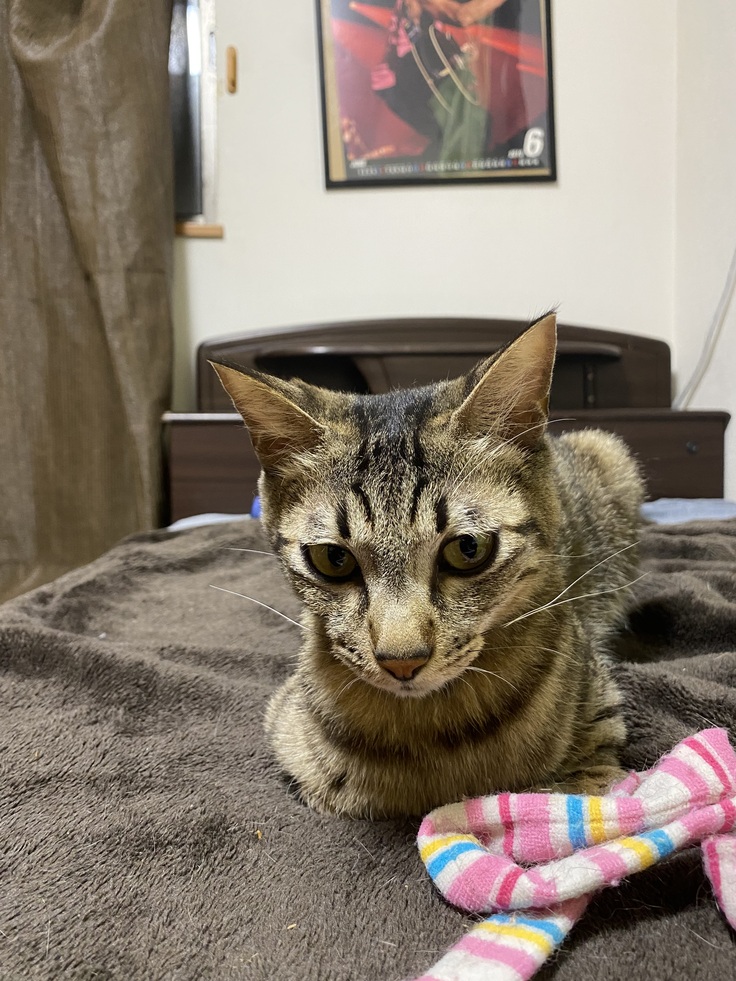恐怖のチュール&お薬タイムが終わり、疲れ顔のここちゃんです。今日も一日、頑張りました♪