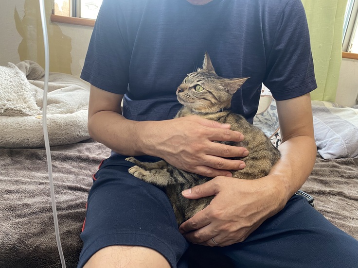 帰ってきてから、朝ごはん(昼ごはん?)をもりもり食べ、点滴をしました。(検査があったので)満腹で眠かったのか、とても穏やかで難なくできました。終わってからも