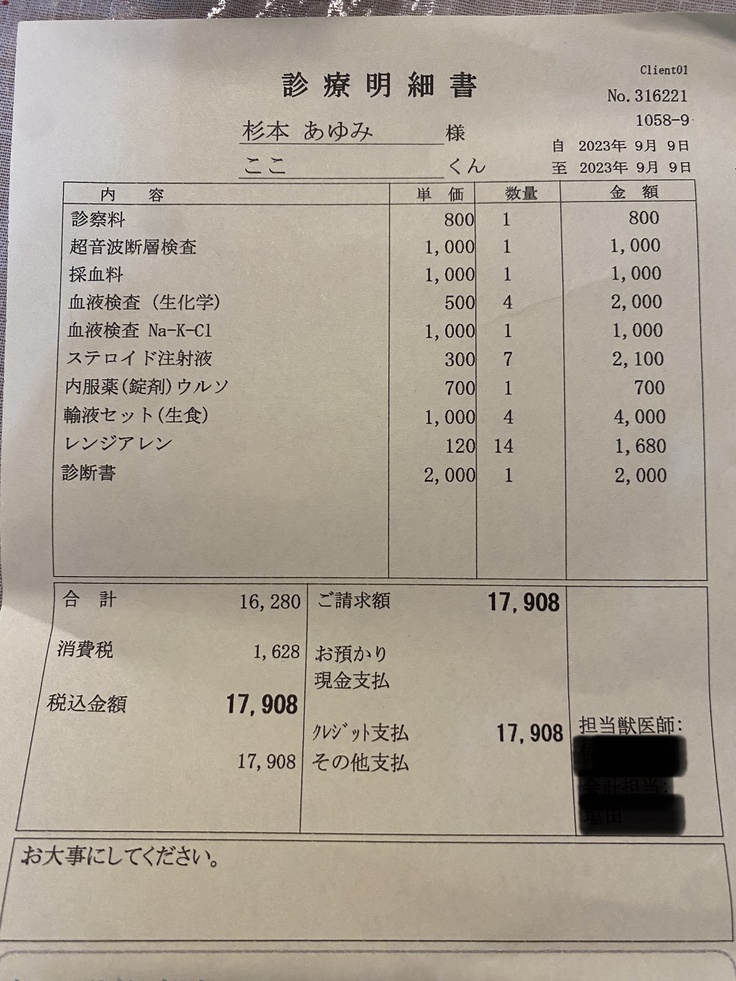 今後予想される治療費も提出する必要があったので、獣医師に相談しなから計算しました。