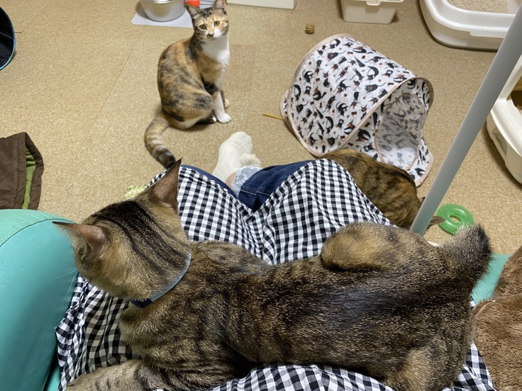 ここちゃんが留守中に、部屋を大きく模様替えしたので、ストレスを与えてさらに具合が悪くならないか心配しましたが、興味津々で探検していました。吐きませんでした!夕ごはんは、ガツガツ食べていましたが、パウチ1袋。いつもは3.5袋なのに、食欲ないのかなと心配になりましたが、その後、時間をあけて、合計3袋食べました。よかった‼️