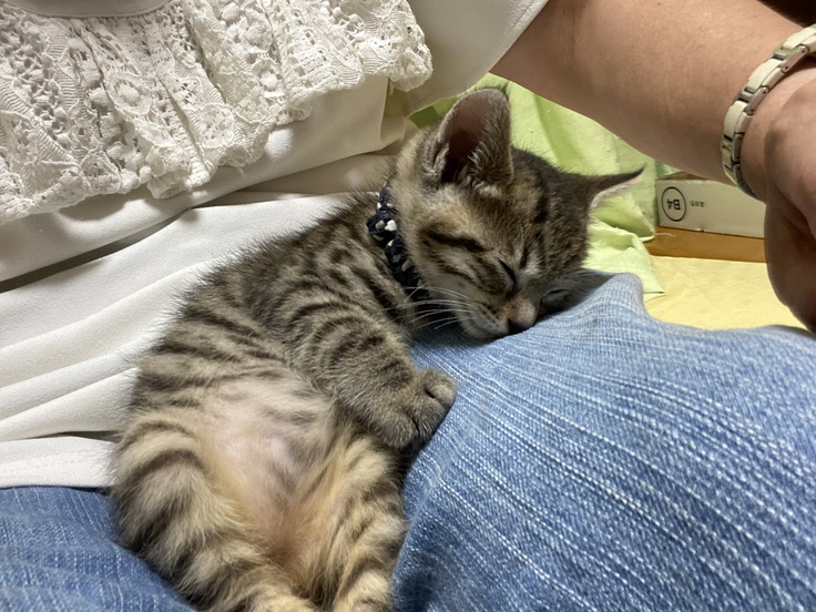 生後およそ1ヶ月半のここちゃん。一番のあまえんぼで、すぐに抱っこに来てました。