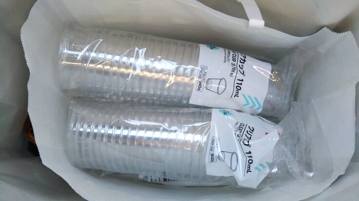 三件目の百均で目当てのサイズのカップを発見し、恐れながら買い占めさせていただきました。