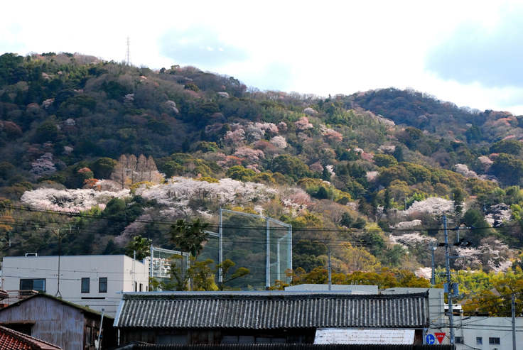 徳島大学から見える眉山の山肌もすっかり春色です。