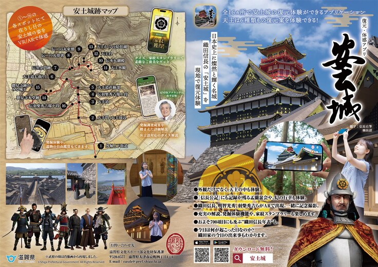滋賀県では、「幻の安土城」復元プロジェクトの一環としてデジタル技術を活用した「幻の安土城」見える化事業に取り組み、スマートフォンで利用可能なアプリケーションの制作を進めてまいりました。