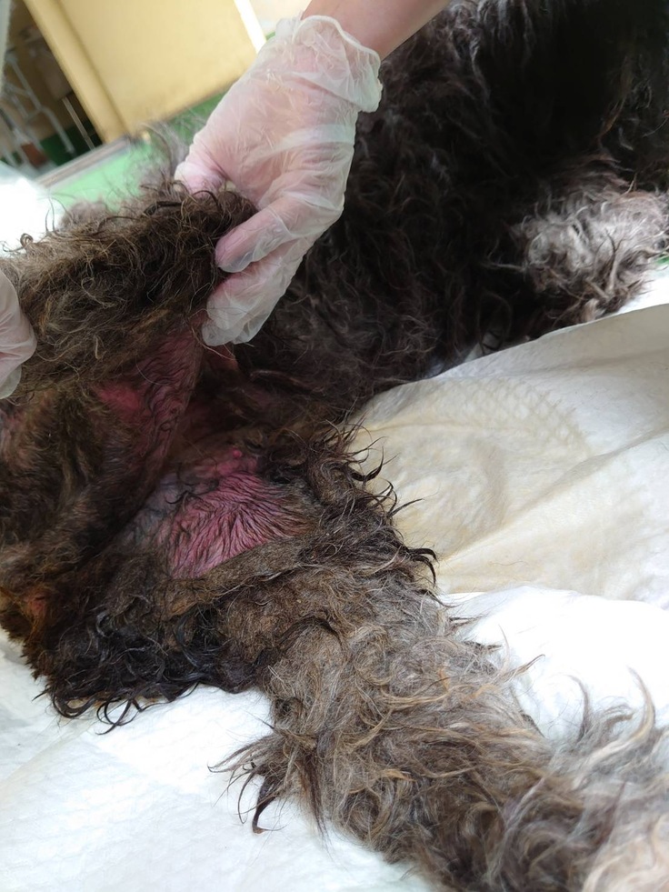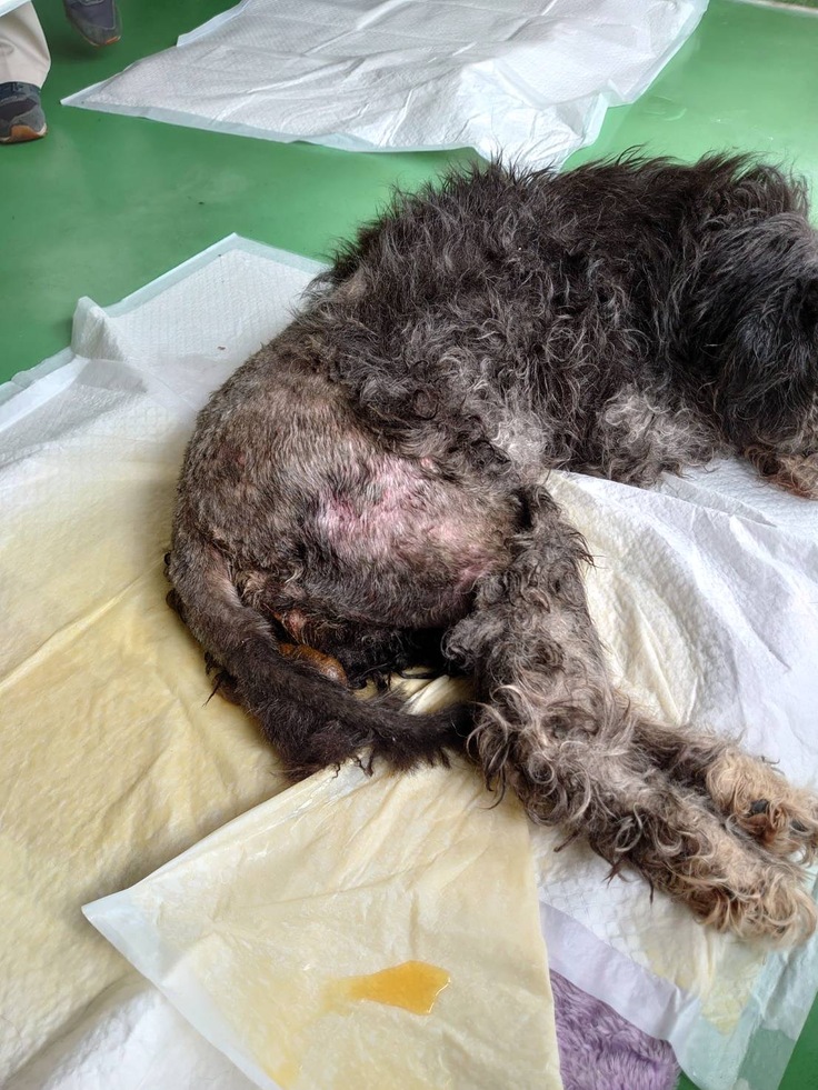 糞尿にまみれていたのもありますが、ウジがわき、全身ぐちゃぐちゃで、バリカンにスタッフ3人がかりで3時間以上かかりました。
