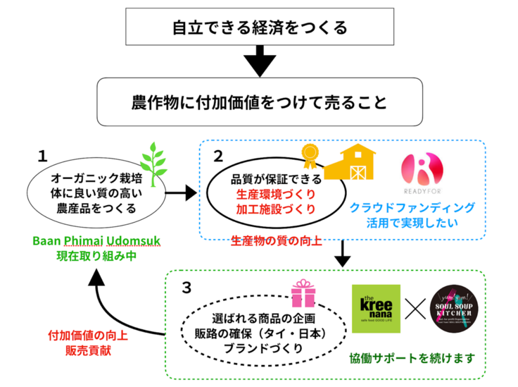 この3者をまとめて支援している団体が作る現地の半官半民支援団体「チョンコーパッタナー農民組合」から、昨年7月にヤムヤムへ直接相談のメッセージが舞い込み、現地へ視察へ赴いたことで今回のクラファンの実施、プロジェクトの実現につながりました。