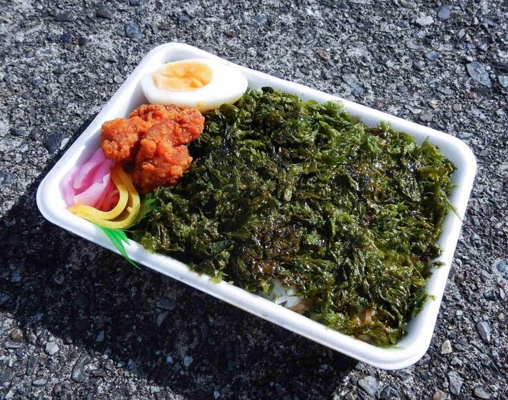 今日は…三宅島に行ったら絶対食べる『のり弁』です🍱のり弁⁉って思ったでしょ~😙のり弁と聞くと、ご飯の上に板海苔が敷かれていて、上に魚フライや唐揚げっていうおなじみのやつを想像するかと思いますが、三宅島の『のり弁』はちょっと違うんです❢❢ご飯の上に、ボリュームたっぷりの岩海苔がこれでもかとのっているんです✨おかずはあくまでも脇役で端っこにちょっとだけ。岩海苔の旨味と香りが溢れていて、口の中で広がる磯感が最高💖三宅島に行ったら私が必ず食べる『土屋食品(商店)ののり弁』是非ご賞味くださぁい(*^^*)