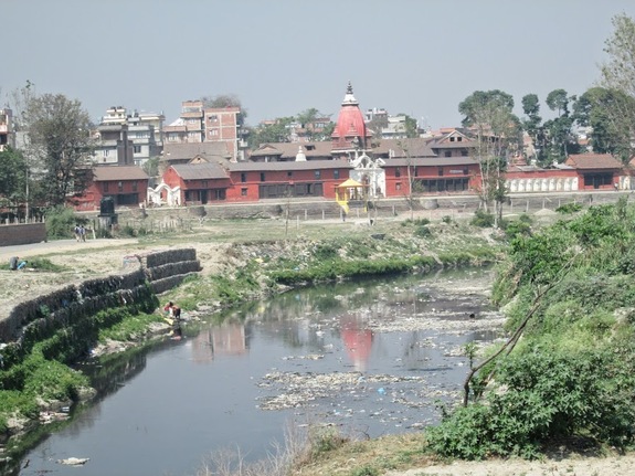 ▲ゴミで水面の半分以上が埋まったバグマティ川