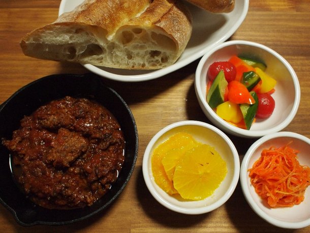 ・ブルーチーズのグラタンとかご盛りパンのセット