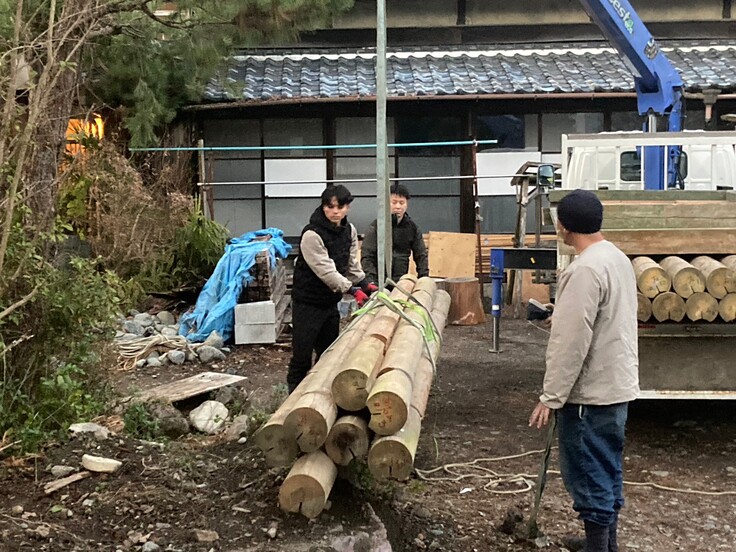 プロジェクトにご賛同いただいている地元の方からのご厚意で、しばらく使用されていないログハウス小屋を譲っていただけることとなり、サウナ小屋として利活用させていただく運びとなりました。先日は小屋の解体を行い、丸太の運搬を終えています。