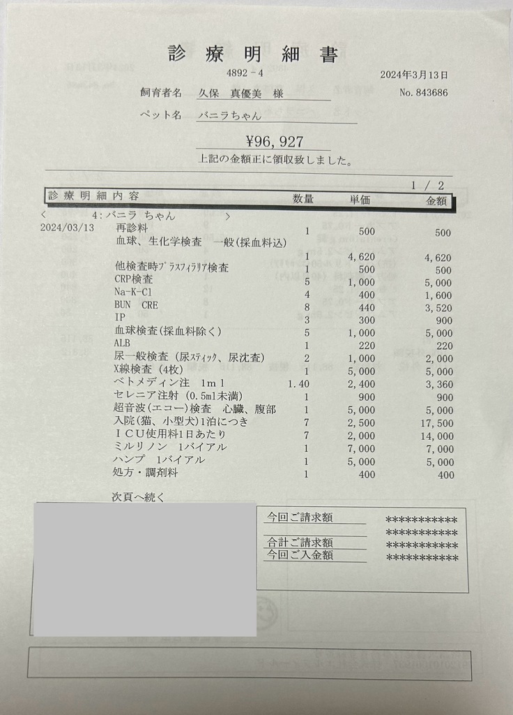 手術しか長く生きる方法がないとわかっていても手術費用が高額で毎回の診察代もかなりかかります。本来は飼主であり家族の私が用意するべき事と重々承知しております。