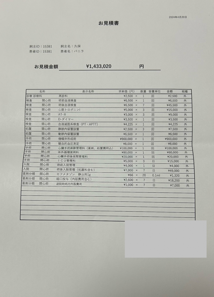 (診断書や見積書などの資料は動物病院からの掲載許諾を得ております)