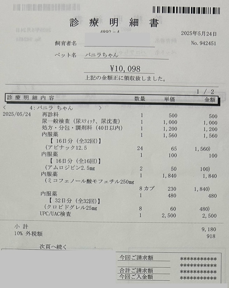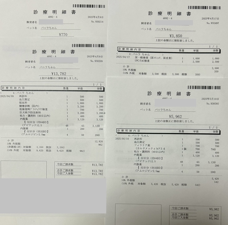 片耳の医薬代が3.000円くらいするためこちらも中々の出費です。