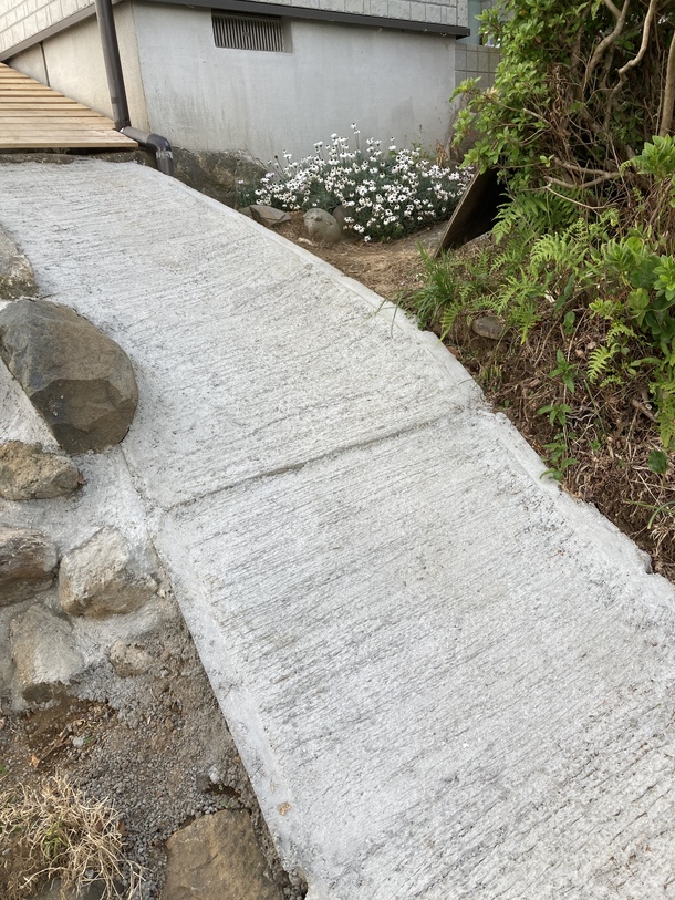 父がバンジャのために車イスでも通りやすい様に階段を取り、コンクリートで平らな坂にしてくれました✨