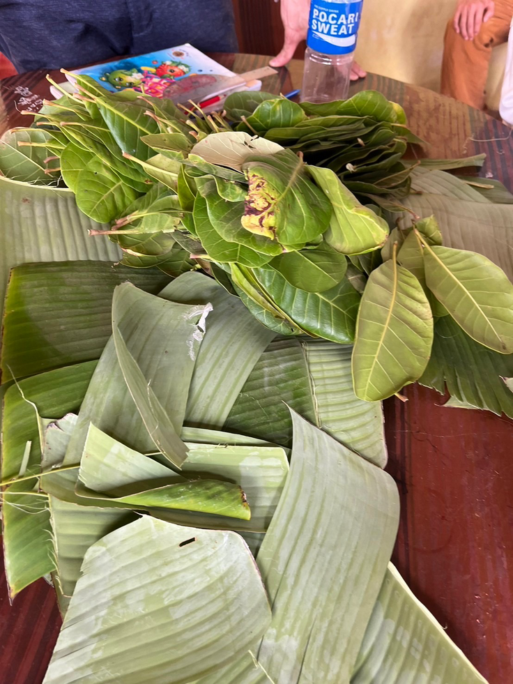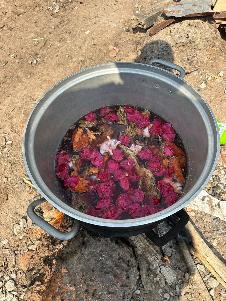 現地の草木を集めて、それらの煮汁でハンカチを染めました!