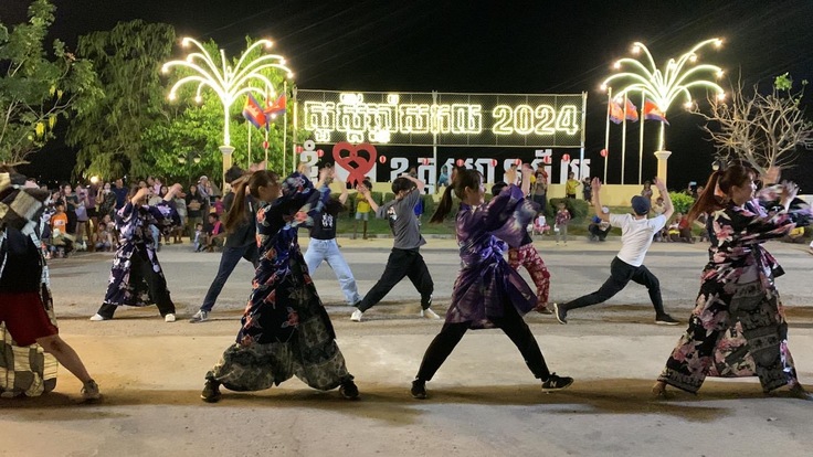 メンバーとアンバサダーは、昨年に引き続き今年も浴衣を着てソーラン節を披露しました!ソーラン節も日本の伝統的な文化の一つなので、これを機にもっとカンボジアの方々に日本文化を知ってもらえればなと思います。