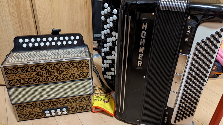 というのも、私はいままでピアノ鍵盤式アコーディオン(このプロジェクトのキービジュアルにもさせてもらっているアコーディオン)を使っていたのですが、修理師になるにはボタン式アコーディオンも弾けるようになっておかねばならぬと思い、ボタン式アコーディオンのレッスンに年明けから通っております!